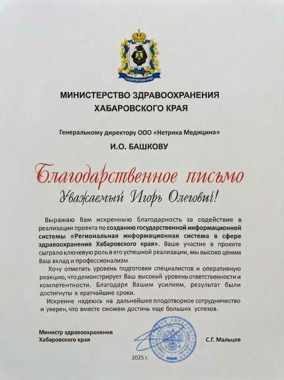 Команда «Нетрики Медицины» обладает многолетней экспертизой в создании государственных информационных систем (ГИС) регионов России и их интеграции с Единой государственной информационной системой в сфере здравоохранения (ЕГИСЗ). Ключевой продукт компании – интеграционная платформа «N3.Здравоохранение».
